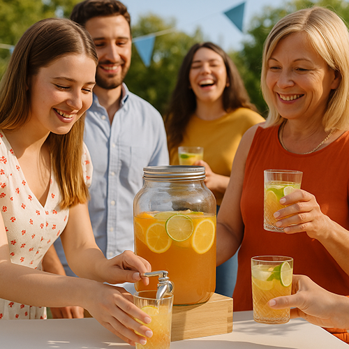 Punch fruité, citronnade maison, eau aromatisée, thé glacé ou cocktail signature… il accueille tout ce que vous avez envie de partager. Et grâce à son robinet pratique, chacun se sert comme un grand — vous pouvez enfin poser ce plateau.