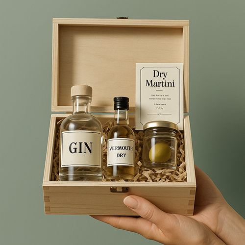 Un Martini Dry à la maison ? Facile. Notre kit contient tout sauf la voix de James Bond. Secouez (ou pas), servez, et sentez-vous irrésistiblement chic.